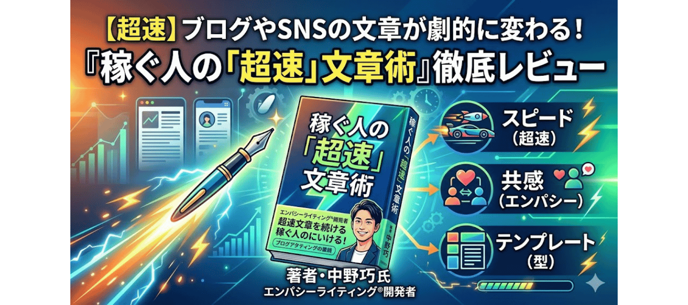 情報が溢れる現代、ゆっくりと時間をかけて100点の文章を書くよりも、読者の心に刺さる文章を「超速」で届けるスキルが求められています。今回は、ブログやSNSの運用を劇的に変える一冊、中野巧氏の著書『稼ぐ人の「超速」文章術』を徹底レビューします。